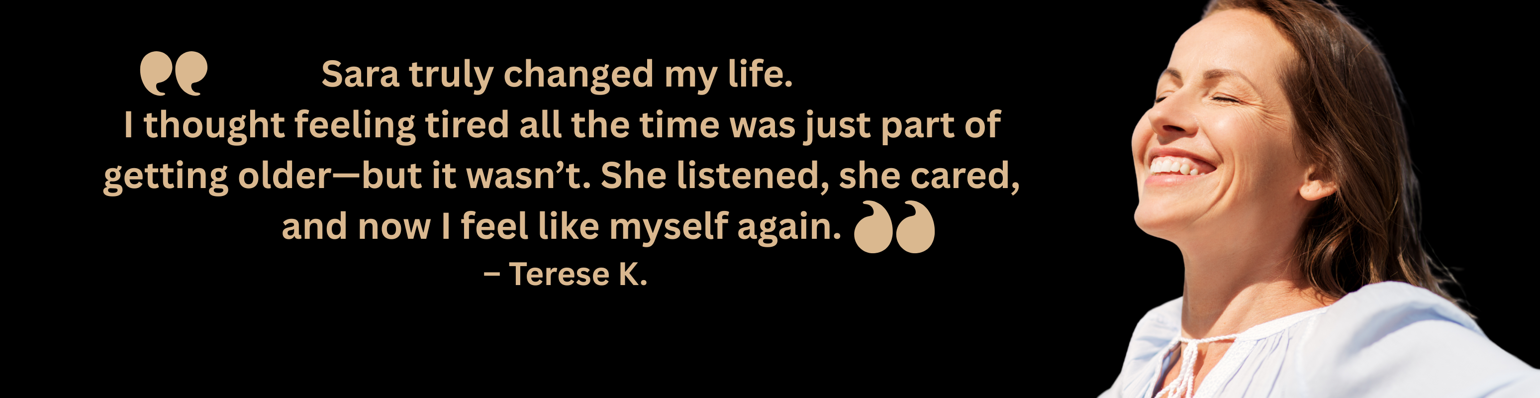 - Lab Testing – Hormone, thyroid, and food sensitivity panels for deeper insight into your health.