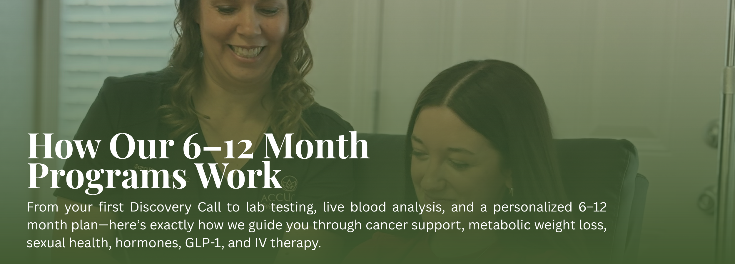 Every client starts with a conversation, then lab-driven insight, and a 6–12 month plan designed around their body’s unique needs.